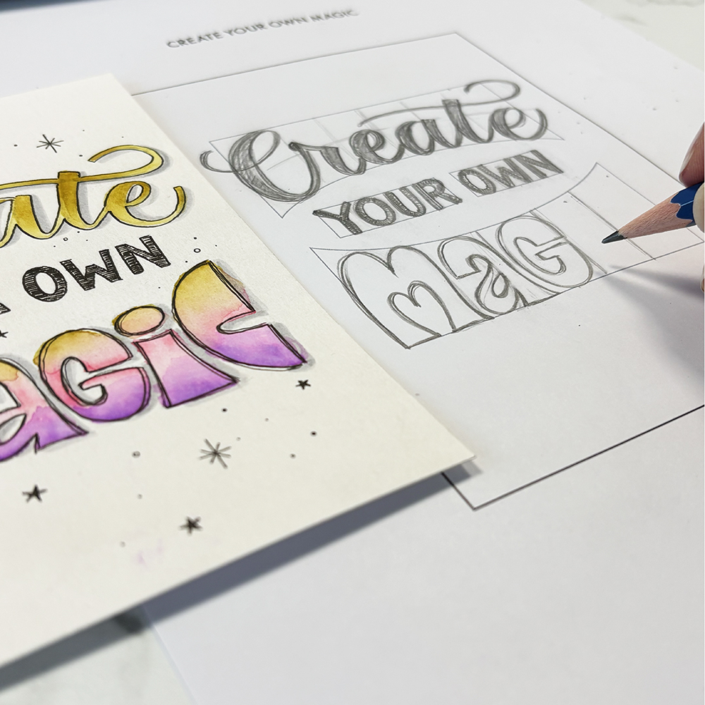 Du zeichnest gerne Buchstaben, weißt aber nicht genau, wie du ein stimmiges Lettering-Layout aufbauen sollst? Vielleicht fehlt dir der Einstieg oder die Idee, wie aus einzelnen Buchstaben ein harmonisches Gesamtbild entsteht.